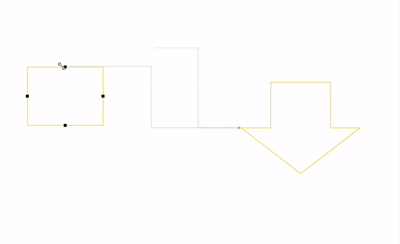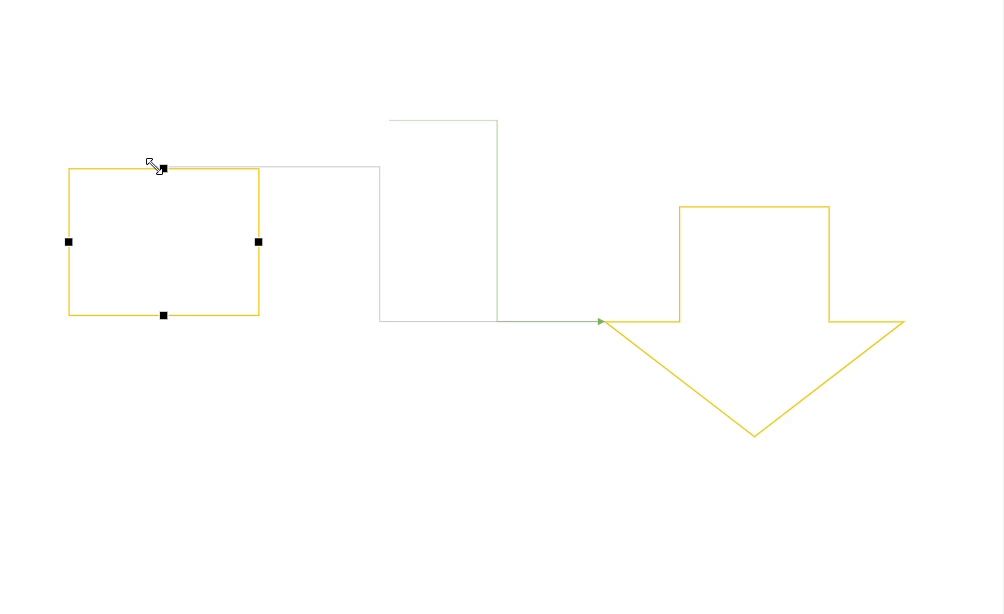 연결점에 접근하면 해당 점과 연결되며, 도형을 가로지르지 않고 우회하는 연결선이 만들어짐