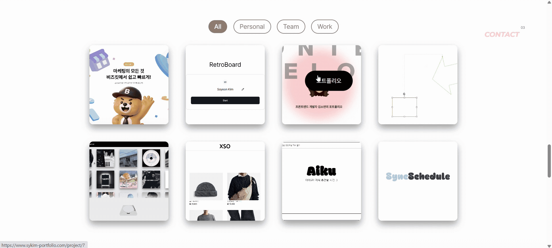 처음부터 직접 기획, 설계, 개발, 배포까지 전 과정을 경험하며 하나의 서비스를 운영하는 관점에서의 개발 프로세스를 익혔습니다. 초기에 프로젝트 데이터를 빈번히 수정하게 되면서, 내부 파일로 관리하는 대신 데이터를 DB로 분리하여 유지보수 효율을 높이는 구조로 개선했습니다. 또한 배포 환경 전환, SEO 개선, UI 수정 등 다양한 시도를 반복하며 지속적인 개선과 실험을 통해 완성도를 높였습니다. 이 프로젝트를 통해 지속적으로 개선하고 운영할 수 있는 구조를 설계하는 것 역시 개발자의 중요한 역할임을 배웠습니다.
